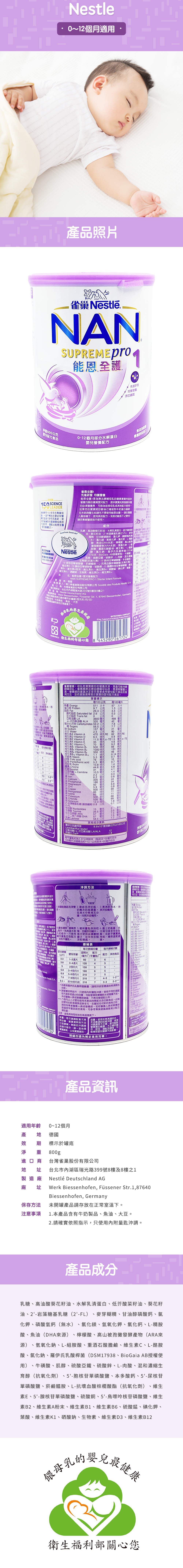 品 名:雀巢 能恩全護1號嬰兒奶粉